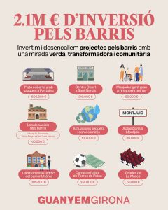 Amb aquesta inversió, Guanyem Girona reafirma el seu compromís amb la millora de la vida dels gironins i gironines, i amb la construcció d’una ciutat més sostenible i inclusiva.