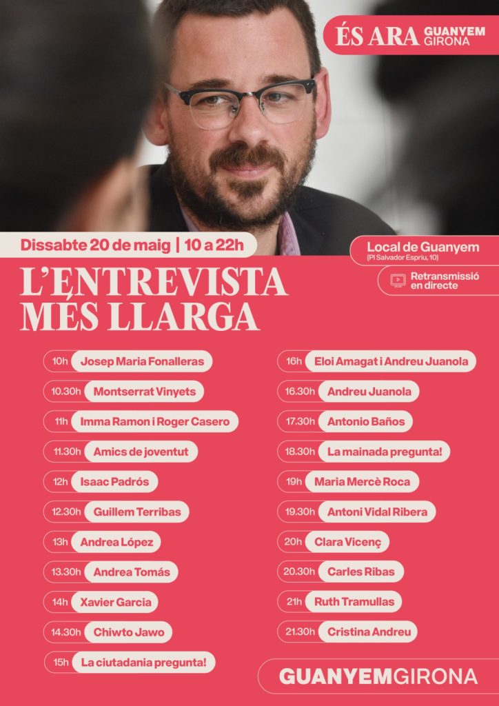 Guanyem organitza l’entrevista més llarga sobre Girona on personalitats gironines conversaran amb l’alcaldable de la formació municipalista