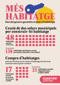 Guanyem Girona reafirma el seu lideratge i aposta per l’habitatge com a garantia de drets per a la ciutadania i afirma que continuarà treballant per revertir la situació dels darrers anys amb un parc d’habitatge públic municipal «que es troba molt per sota del llindar desitjable.»