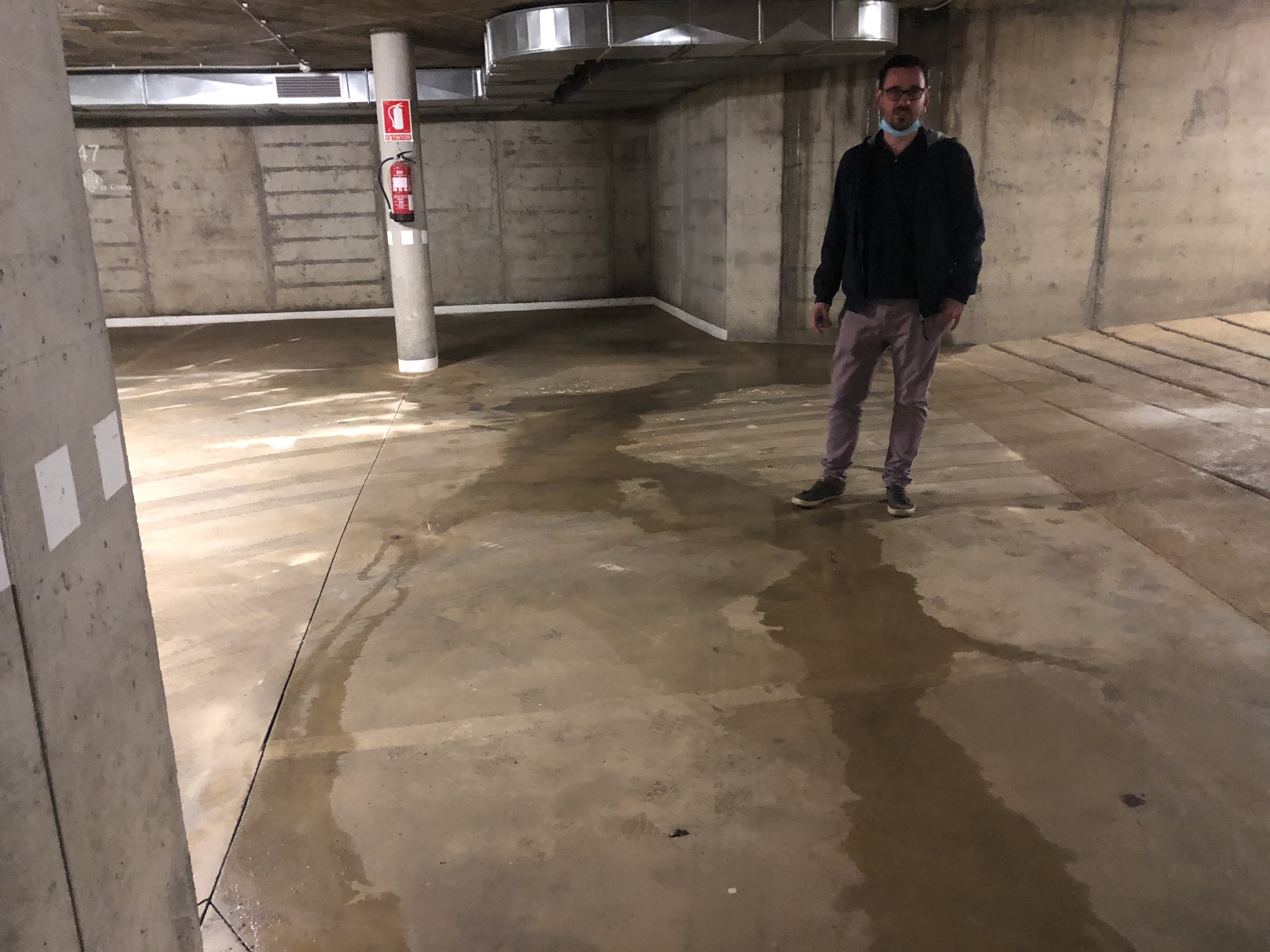 Guanyem Girona ha denunciat que l’aparcament municipal subterrani situat a la plaça del Pallol, just darrere de l’Ajuntament, continua tancat als usuaris des que es va inundar el gener passat amb el temporal Gloria. El grup municipal ha recordat que la infraestructura ja patia deficiències estructurals greus que provocaven que es negués amb les pluges però que el temporal del gener va provocar que quedés inservible i el consistori es va veure obligat a tancar-lo per arreglar-ne els desperfectes. Tanmateix, el principal grup a l’oposició ha lamentat que des de llavors, ara fa vuit mesos, l’Ajuntament “no ha fet cap tipus d’actuació per evitar el deteriorament progressiu d’un bé municipal”. Lluc Salellas, cap de l’oposició al consistori gironí, ha visitat l’aparcament del Pallol per avaluar-ne l’estat. Les fotografies publicades per Guanyem mostren grans capes de verdet a les escales d’accés a l’aparcament i acumulació d’aigua a sostres i cantonades.